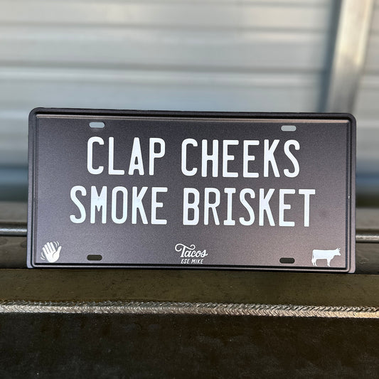 CLAP CHEEKS SMOKE BRISKET - Metal License Plate Sign